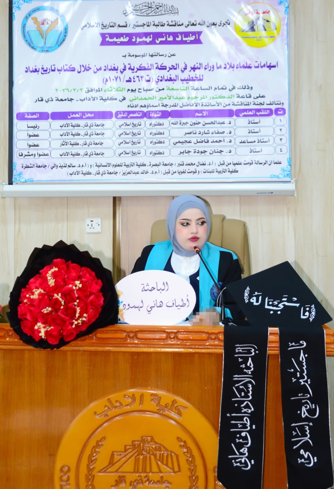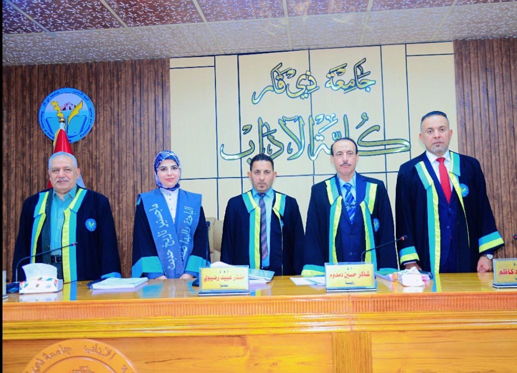 مناقشة رسالة ماجستير في التاريخ الإسلامي بآداب ذي قارجرت بعون الله تعالى في قسم التاريخ – كلية الآداب / جامعة