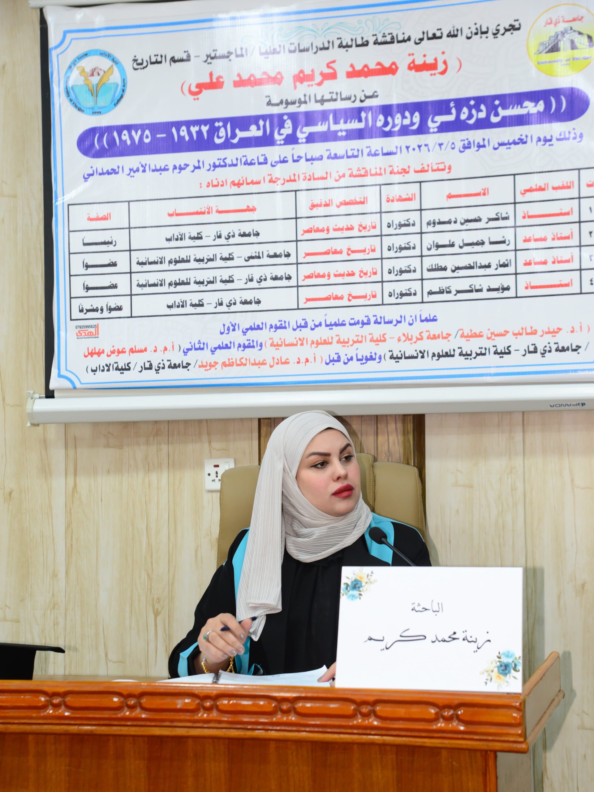 مناقشة رسالة ماجستير حول الدور السياسي لمحسن دزه ئي فيشهد قسم التاريخ الحديث في كلية الآداب انعقاد مناقشة رسالة الماجستير المقدمة