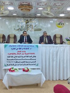 احتفاءً باليوم العالمي للغة العربية (يوم الضاد)، انعقدت صباح اليوم الخميس الندوة العلمية الموسومة بـ (اللغة العربية بين الجمال والدلالة والتوصيل)، التي نظمها قسم اللغة العربية في كليتنا، وذلك برعاية كريمة وإشراف مباشر من الأستاذ الدكتور كاظم فاخر الخفاجي، عميد كلية الآداب، وعلى قاعة المعرفة.