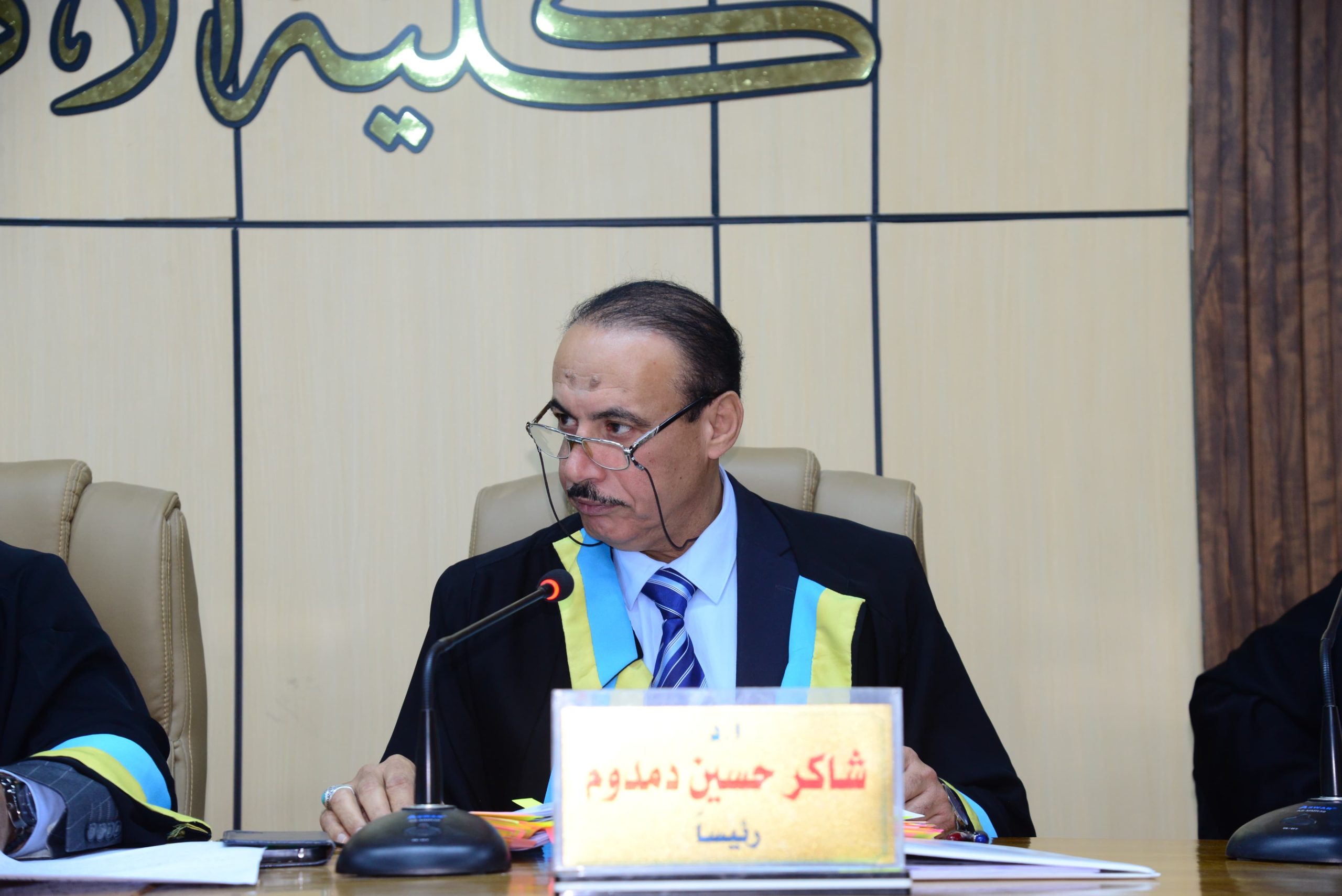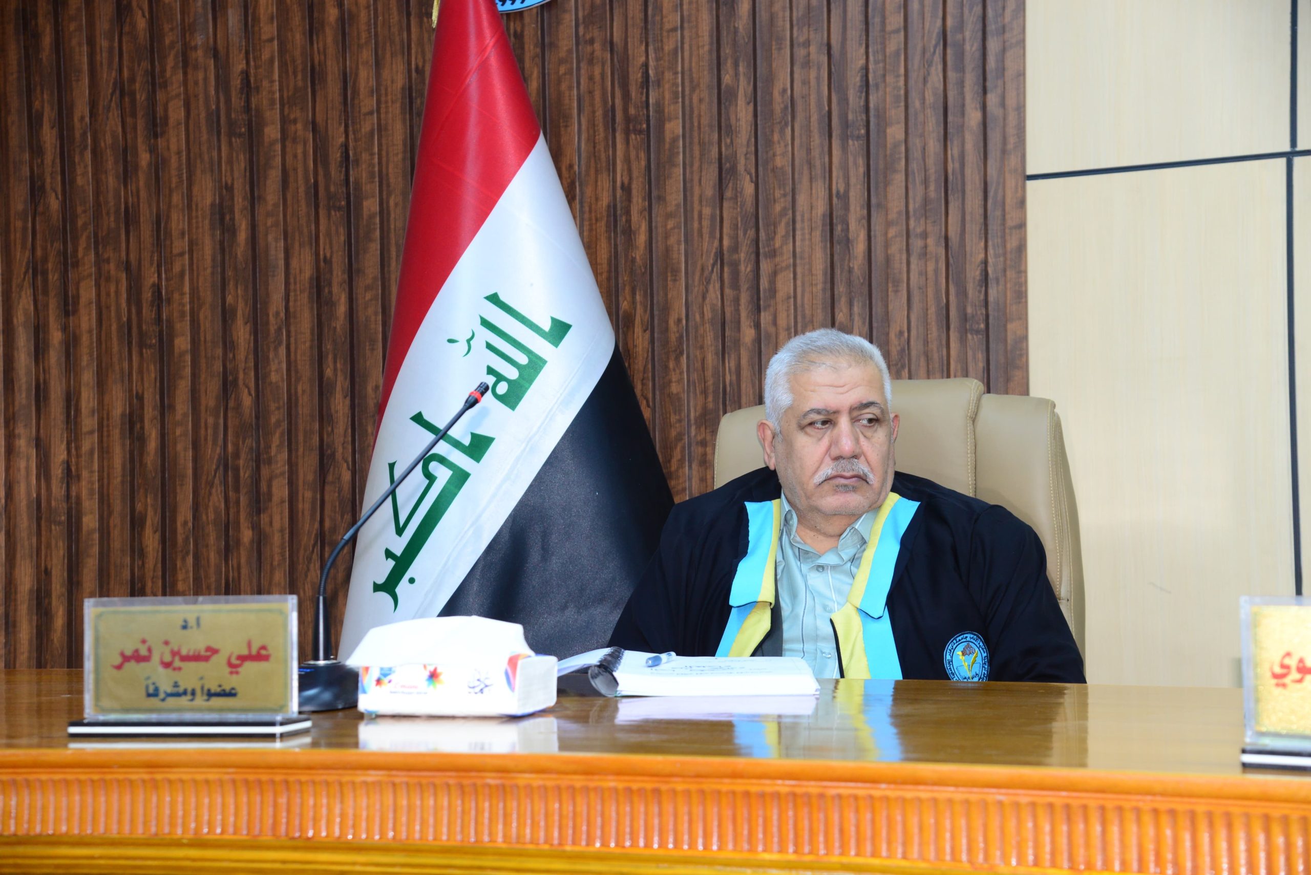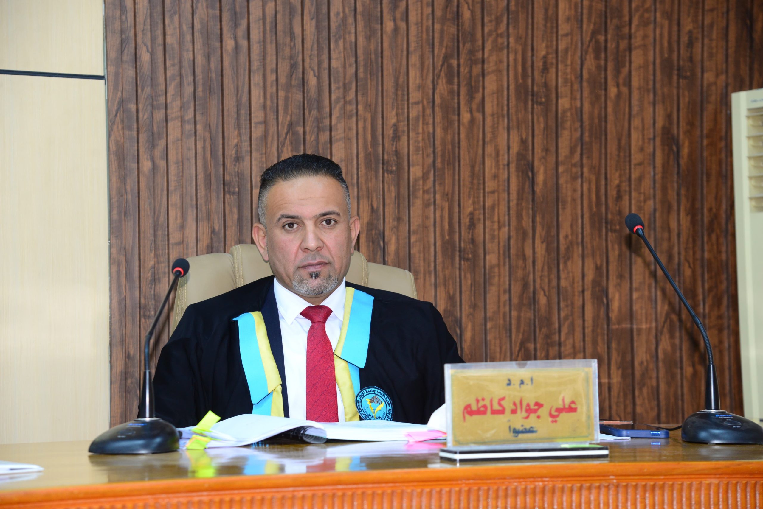 انعقدت المناقشة في تمام الساعة التاسعة صباحاً من يوم الخميس الموافق 26 / 2 / 2026، وذلك على قاعة المرحوم الدكتور عبد الأمير الحمداني.