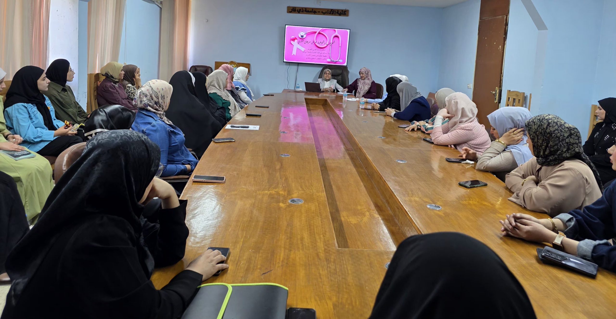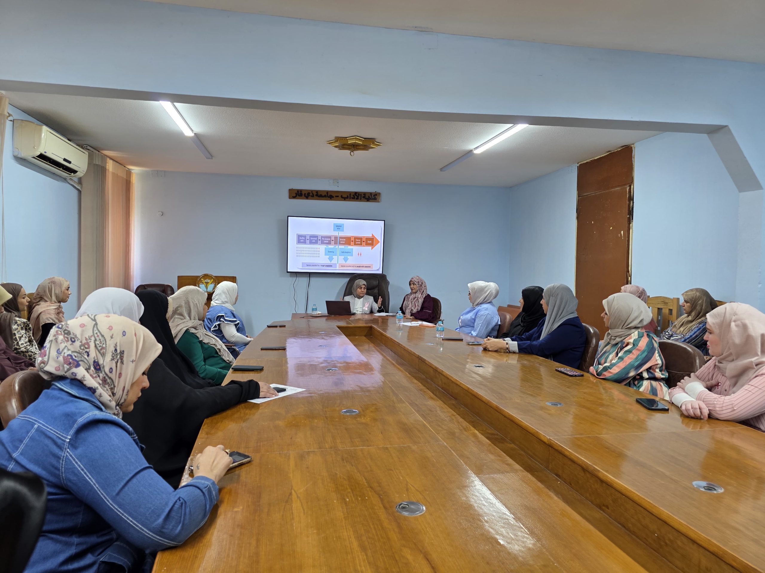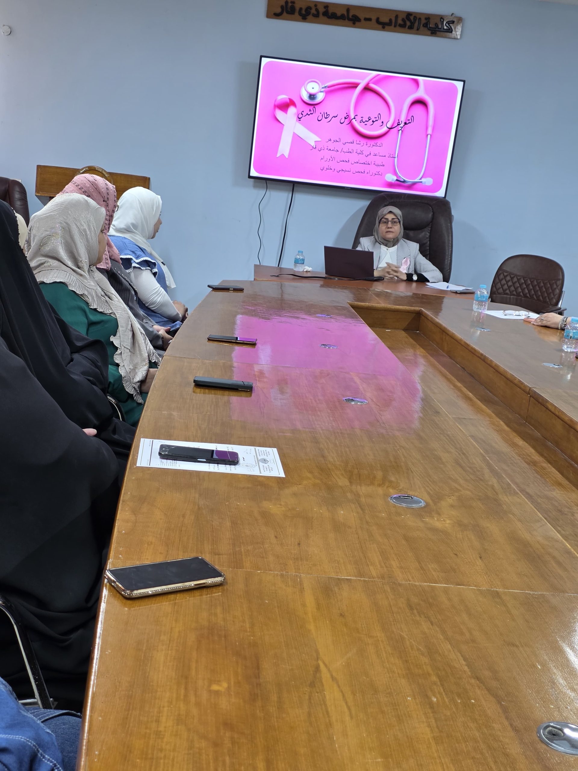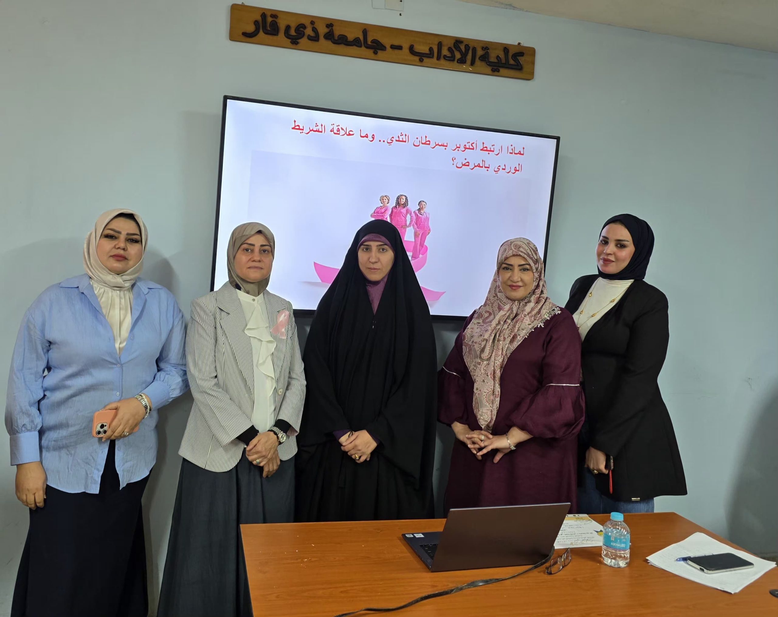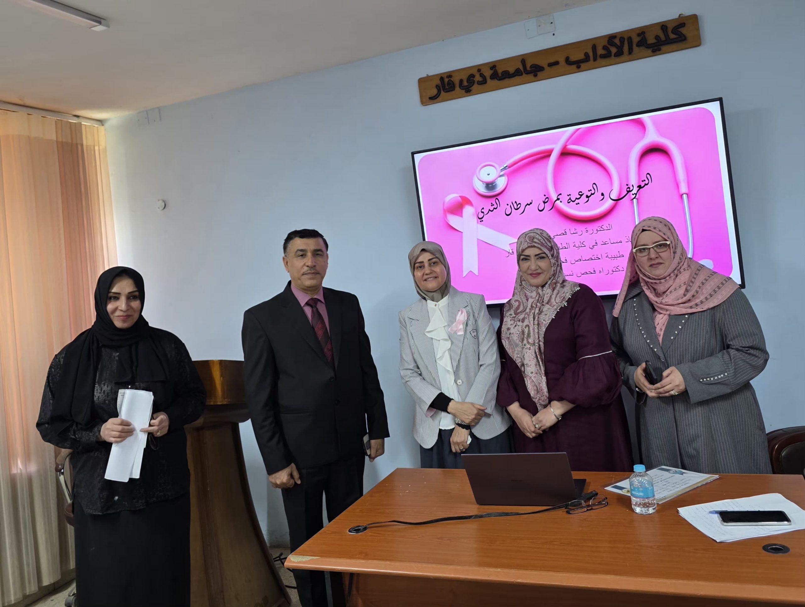 انسجاماً مع رسالة كلية الآداب في تعزيز الوعي الصحي والمجتمعي، وبمبادرة من وحدة شؤون المرأة، أُقيمت صباح يوم الاثنين الموافق 13 تشرين الأول 2025، في قاعة الحمداني، ندوة علمية موسومة “التعريف والتوعية بمرض سرطان الثدي”، بحضور جمع من التدريسيين والطلبة والمنتسبين.