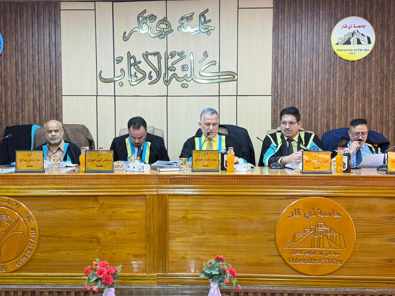وانعقدت المناقشة في تمام الساعة التاسعة من صباح يوم الأحد الموافق 15/2/2026، على قاعة المرحوم عبد الأمير الحمداني.