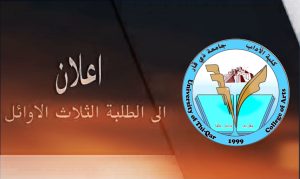 تدعو كلية الآداب – جامعة ذي قار الطلبة الأوائل حصراً من خريجي العام الدراسي 2024–2025 (ولكلا الدراستين: الصباحية و المسائية) إلى مراجعة شعبة شؤون الطلبة في الكلية لغرض توليد الكودات الخاصة بهم، وذلك استناداً إلى التعليمات الصادرة من مجلس الخدمة الاتحادي، تمهيداً لإرسالها رسمياً إلى المجلس.